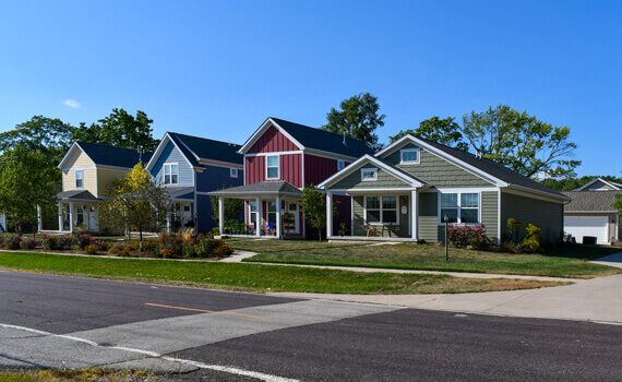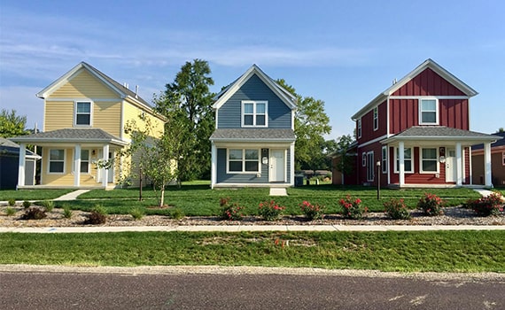 Having a strong interest in architecture and new urbanism, we came across this concept of a Pocket Neighborhood. With it’s cute cottages, shared common spaces, and energy efficient homes, we thought it was just what Peoria needed. We selected a 4 acre piece of property close to restaurants, shopping, and I-74 to start building this vision. Upscale single family rental homes that are energy star certified, feature a covered front porch, side patio, two stall attached garage and come complete with appliances including washer and dryer.